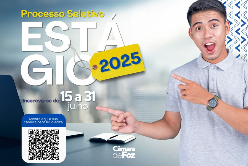 A Câmara de Foz abriu processo seletivo para contratação de estagiários. As vagas são de cadastro reserva nas áreas de: Administração ou administração pública; Ciência da Computação ou áreas afins; Comunicação Social - Jornalismo; Direito e Relações Públicas.
