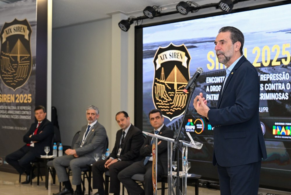 Na abertura do 19º Siren – Encontro Nacional de Repressão a Drogas, Armas, Crimes contra o Patrimônio e Facções Criminosas, realizada nesta terça-feira (2), em Foz do Iguaçu (PR), o superintendente regional da Polícia Federal no Paraná, Rivaldo Venâncio, destacou a importância da parceria com a Itaipu Binacional no combate ao crime organizado na região de fronteira. Segundo ele, os investimentos em tecnologia e cooperação institucional com a Itaipu e Itaipu Parquetec são fundamentais para reforçar a segurança na região. O evento reúne cerca de 230 policiais federais de todo o País para alinhar estratégias e ações integradas contra ilícitos transnacionais.