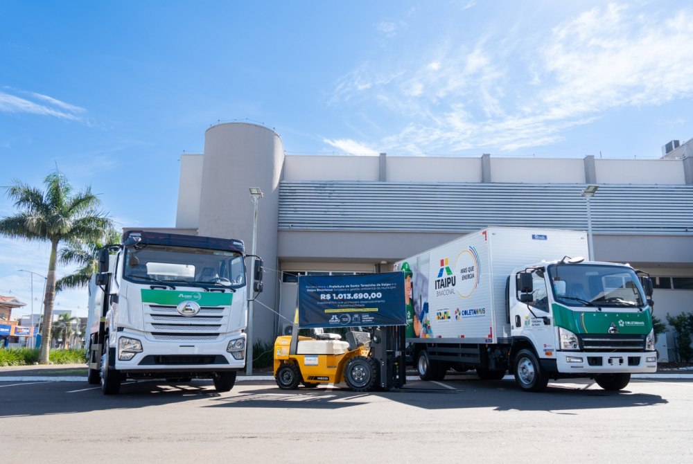 A Itaipu entregou, na manhã de terça-feira (27), dois caminhões e uma empilhadeira para a Associação dos Catadores de Resíduos Recicláveis e/ou Reaproveitáveis de Santa Terezinha de Itaipu (Acaresti). O investimento, de mais de R$ 1 milhão, com contrapartida do Município, acontece por meio do Programa Coleta Mais, vinculado ao Itaipu Mais que Energia, voltado a melhorar a qualidade de trabalho e vida de catadores e catadoras do PR e MS.