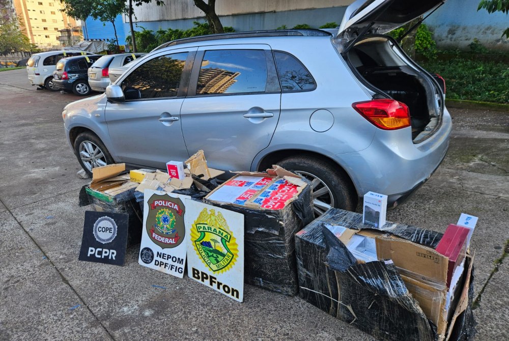 No veículo abandonado, um Mitsubishi ASX, havia 7 volumes contendo, aproximadamente, 720 smartphones e dezenas de cigarros eletrônicos.