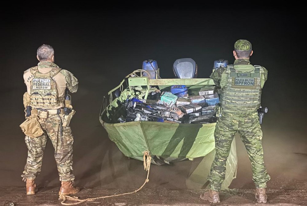 No interior da embarcação abandonada foram encontrados dezenas de fardos de maconha prensada, que após pesagem totalizaram 1.445,3 kg do entorpecente. Durante as buscas na região, também foi localizada uma motocicleta abandonada, possivelmente utilizada por carregadores que aguardavam para realizar o transbordo da droga. A embarcação, equipada com motor de 130HP, a motocicleta e a droga foram encaminhadas à Delegacia de Polícia Federal em Foz do Iguaçu para os procedimentos cabíveis.